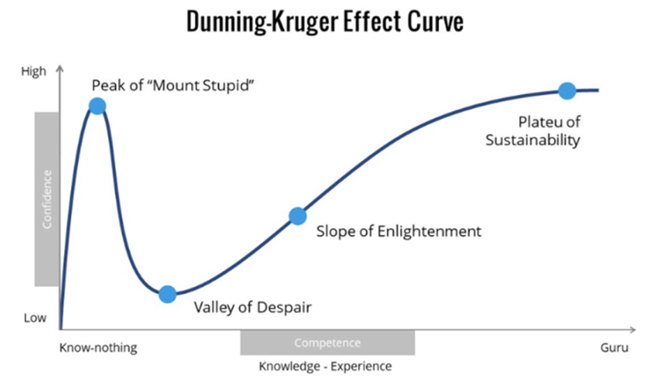 In the other half of my life, I design HR and management training. And one of the models that we use is the Dunning-Kruger effect to explain what happens when people start to build their knowledge.